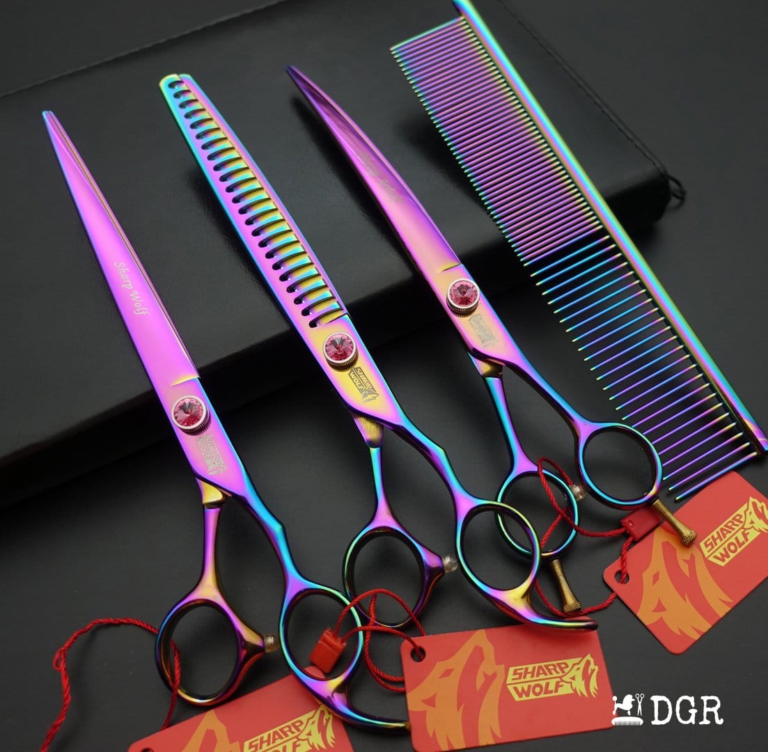 7“ Pro. PET GROOMING Shears 4Pcs-comb (3 colors available)